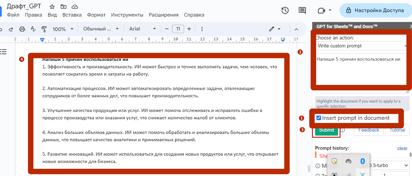Это может быть таблица, маркированный список, структурированный текст с подзаголовками или даже шаблон письма. Четкое обозначение формата избавит вас от необходимости переформатировать полученный ответ.