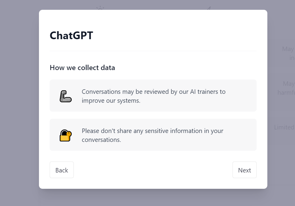 И еще из интересного. Хоть представители OpenAI и говорят, что сервис не обучается на разговорах с пользователями, но приписка о том, что диалоги могут быть пересмотрены в целях обучения системы, — имеется.