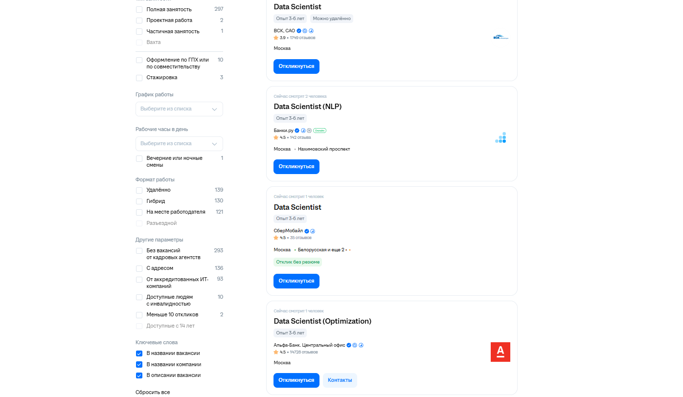 Не сбрасывайте со счетов и традиционные доски объявлений — hh.ru, rabota.ru, superjob.ru. Крупные российские компании часто ищут специалистов именно через эти площадки.