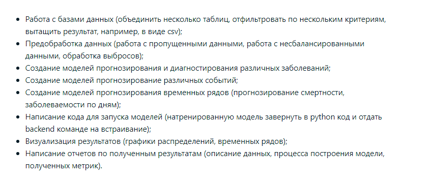 Круг обязанностей специалиста по данным может отличаться от компании к компании. Например, в одном банке специалист может заниматься исключительно вопросами скоринга, в другом — только вопросами по конкретному банковскому продукту. Но чаще всего список таких обязанностей у специалиста примерно одинаковый.