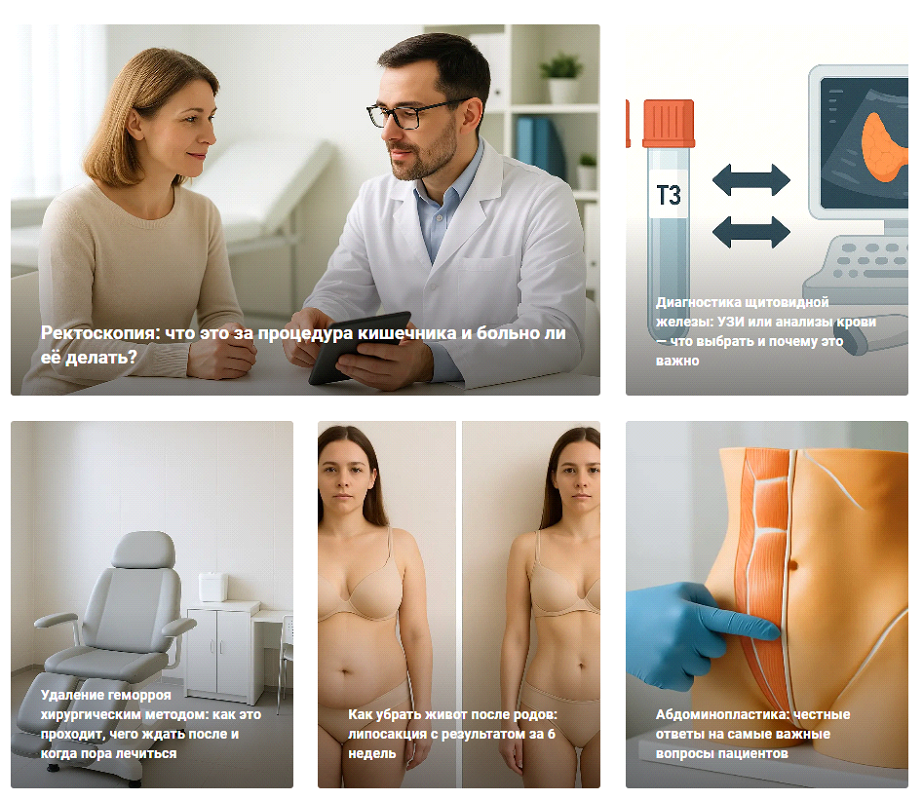 - Профили или страницы врачей с указанием образования, специализации и сертификатов.