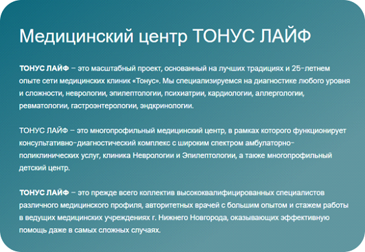 Еще один момент, о котором часто забывают владельцы клиник — тексты не должны быть портянкой из букв.