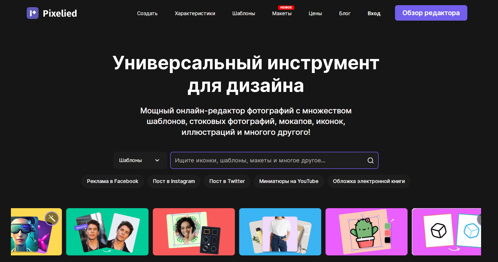 Pixelied подходит для маркетинга в соцсетях, помогает в брендинге и разработке фирменного стиля, создании контента для блогов и сайтов, а также визуализации товаров для e-commerce. Инструмент отличается удобным интерфейсом, комплексным набором функций, большой библиотекой шаблонов и стоковых материалов, и главное — доступной ценой.