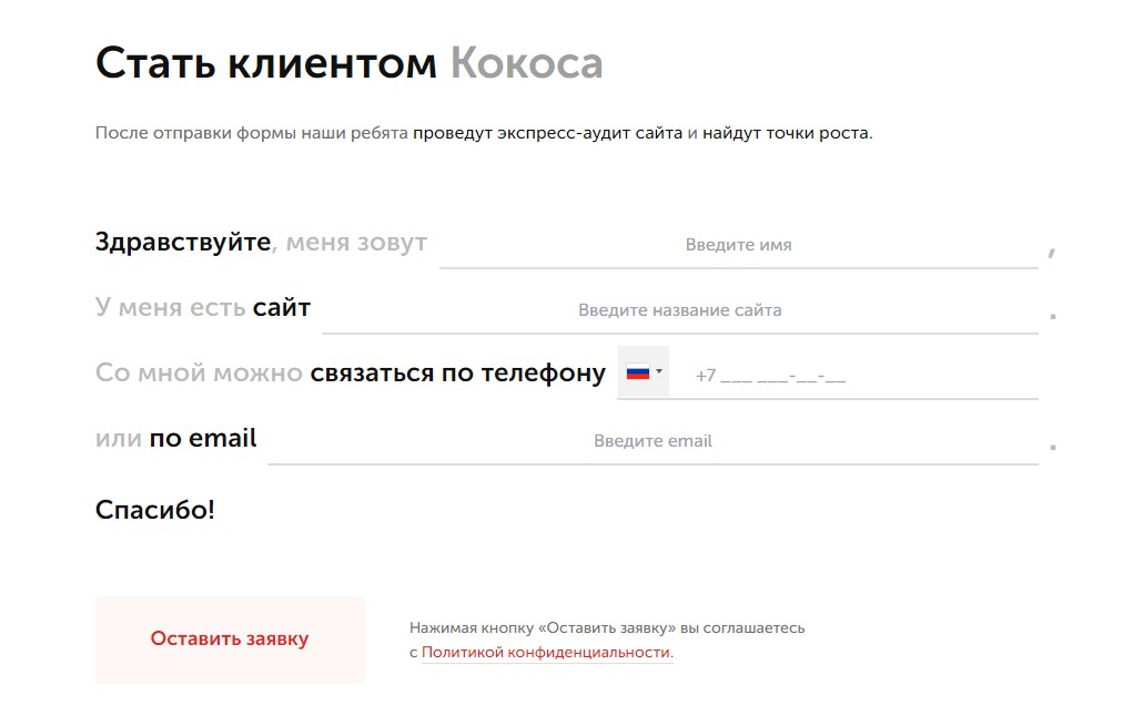 - Форма СТА, лид-магнит — активная форма, которую заполняет читатель, также подходящая по смыслу. Используется, чтобы повысить количество обращений на сайт.