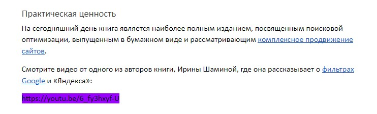 Затем с помощью сочетания клавиш Ctrl+V вставил ссылку на видео в текст: