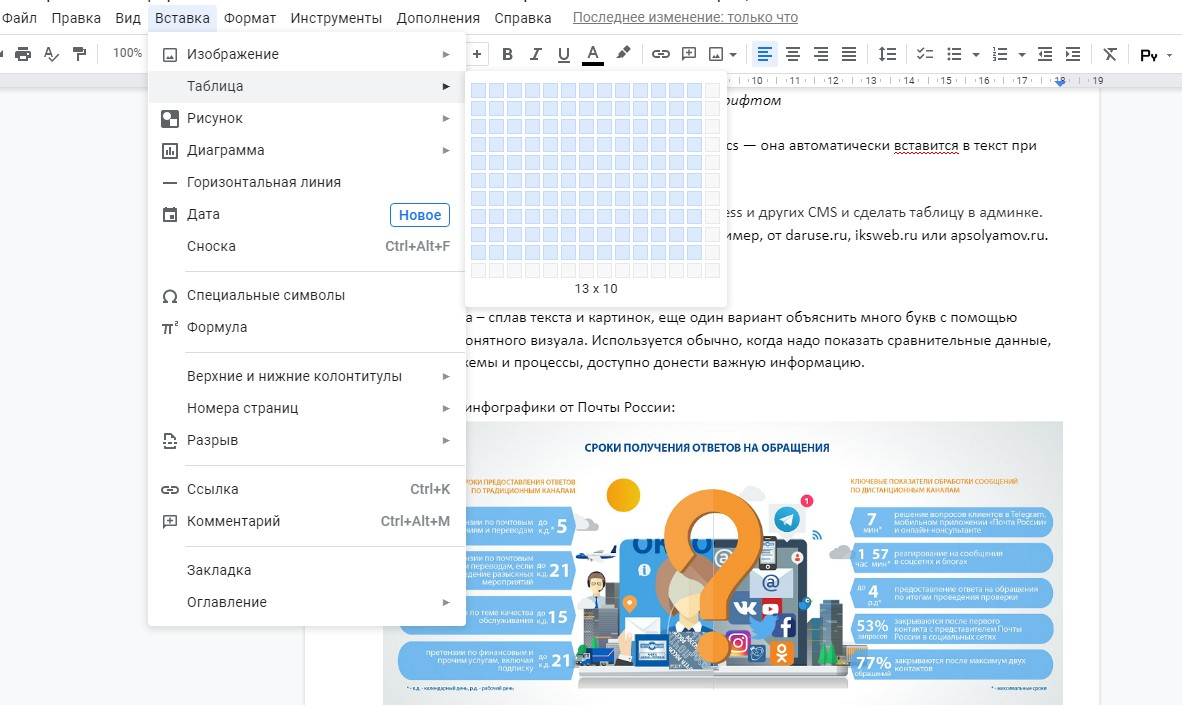 Для создания врезок придется прибегнуть к помощи верстальщика, который вставит их на сайт, или сделать это самостоятельно. В «Google Документах» просто можно выделить места для врезок цветом и дать указание верстальщику, чтобы не пропустил.
