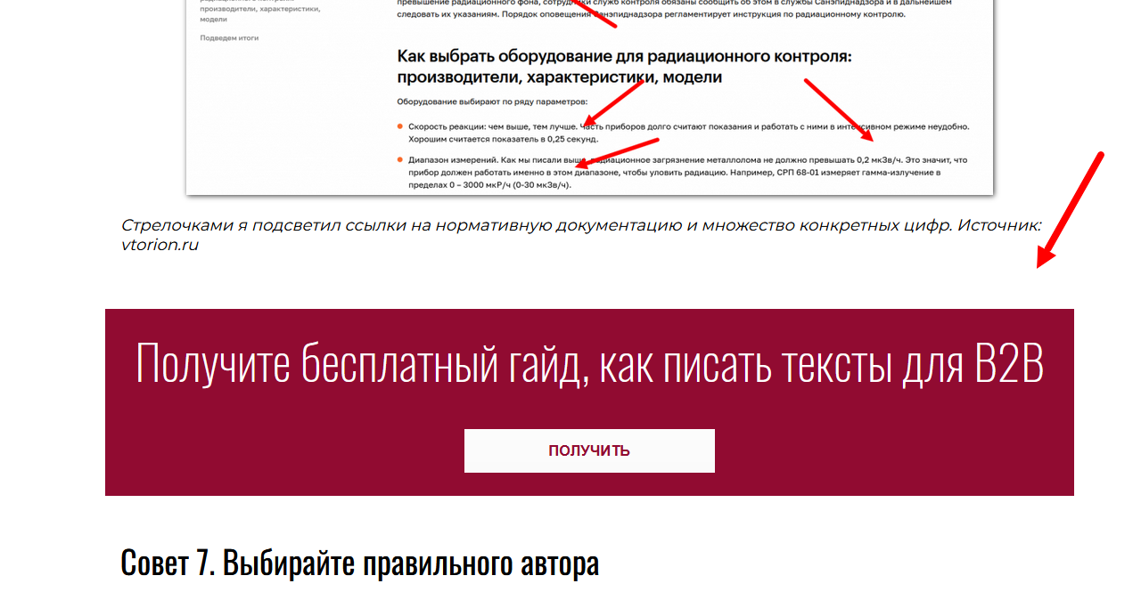 - Для экспертных материалов — переход на страницу услуги. «Готовы улучшить контент на сайте? Посмотрите наши кейсы».