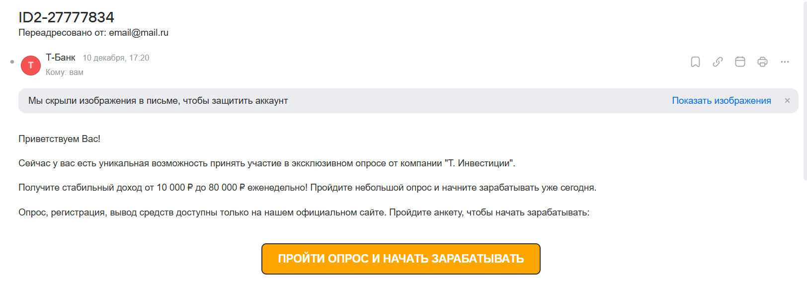 Мошенники часто используют способы кражи именно с использованием фишинговых ссылок в письмах на электронную почту, в сообщениях в мессенджеры или социальные сети. Это могут быть фальшивые письма от банков, предложения о крупных заработках или приглашения на сайты, которые похожи на крупные маркетплейсы. Например, вам пришло письмо от «Wilberries», а вы и не заметили, что название площадки написано с ошибкой: без буквы D.
