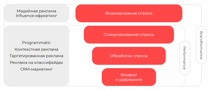Мы работаем на разных этапах воронки привлечения аудитории. Запускать рекламу на холодного клиента и на готового к покупке — разные вещи. На этапе формирования спроса выгоднее привлекать клиента медийной рекламой и перфоманс-маркетингом. На дальнейших этапах в ход идут другие инструменты — от programmatic до CRM-маркетинга.