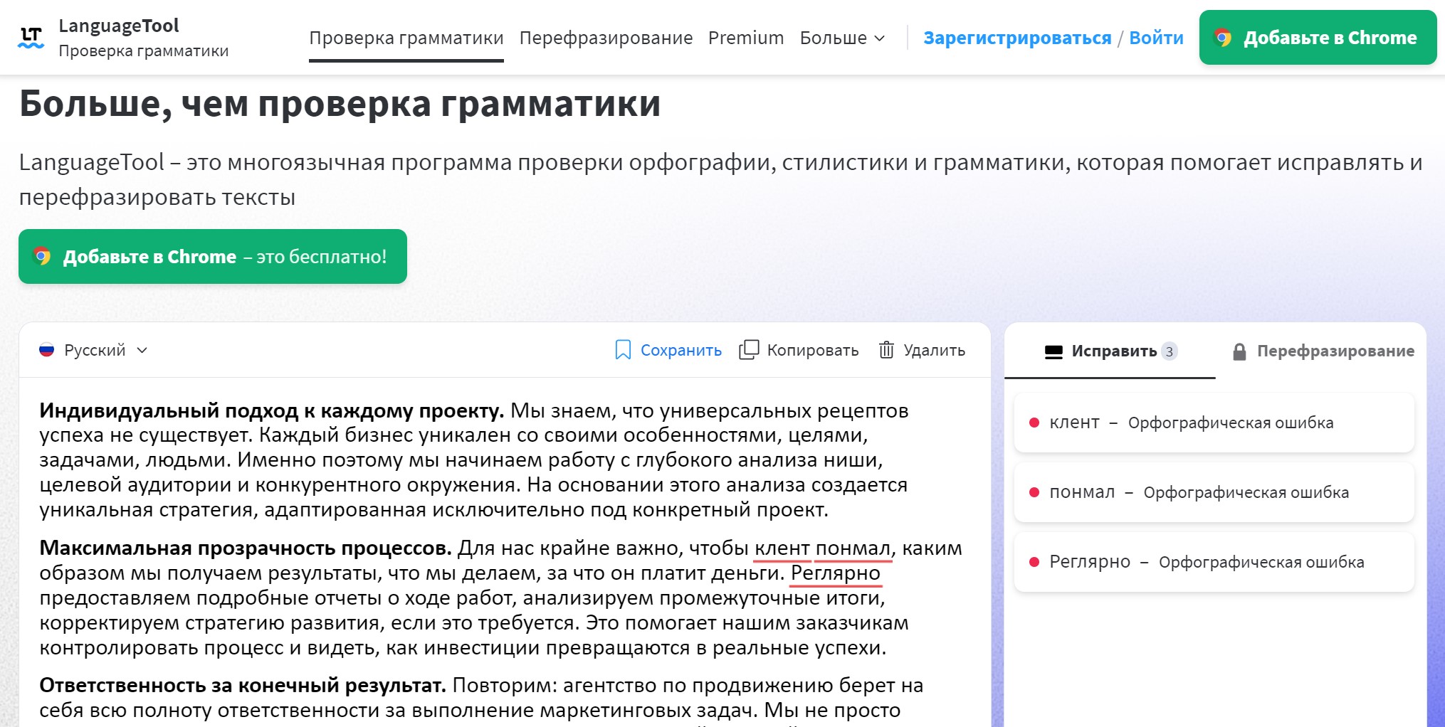 Сайт: https://languagetool.org/ru/