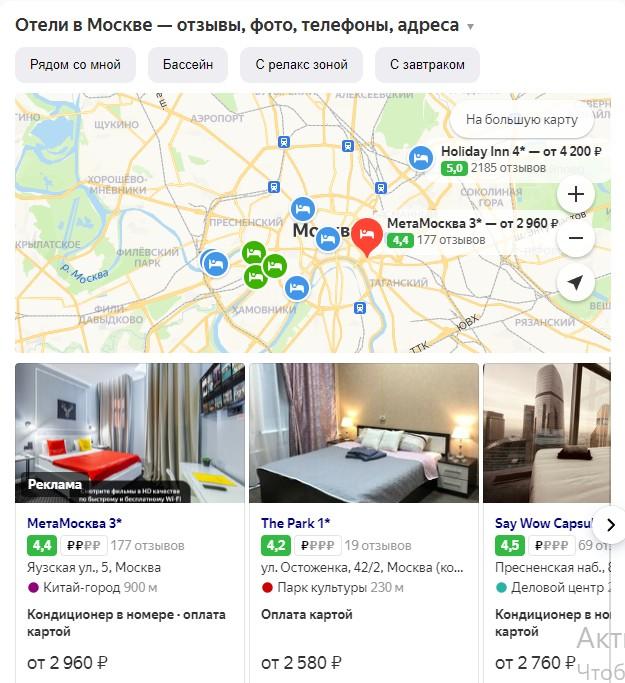 - Локальная выдача (Local Pack). Оба показывают карты и списки организаций. Но «Яндекс», как правило, более детализирован для локальных бизнесов и теснее интегрирован со своими Картами и Справочником организаций.