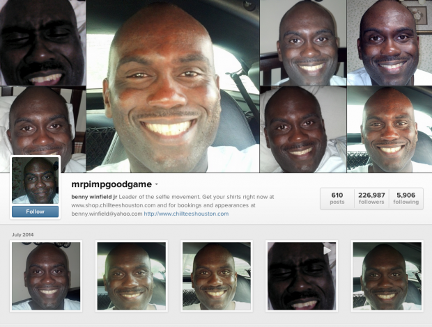 Полагаете, что селфи слишком заезженный способ продвижения в Instagram, чтобы можно было применить к нему креативный или инновационный подход? Пожалуй, можете продолжать так считать, поскольку здесь всё равно ловить уже нечего. Мегапопулярный тренд давно уже подчинил себе некий Бенни Уинфилд (Benny Winfield Jr.). Этому человеку удалось стать лицом селфи, доведя принцип использования фото самого себя до абсурда. Разместив в социальной сети 610 практически одинаковых снимков собственного лица, Бенни Уинфилду удалось привлечь 200 000 подписчиков.