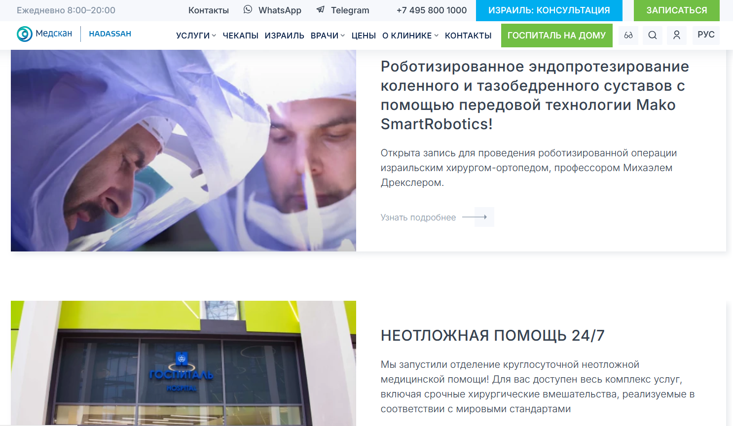 Hadassah — известный московский медицинский центр. Фишка компании — израильские врачи: известно, что израильская медицина считается одной из лучших в мире.