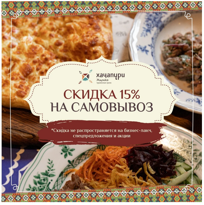 «Хачапури Марико» — местечковый грузинский ресторан. Здесь все по классике: кавказское меню как основа, есть бизнес-ланчи, самовывоз и доставка.