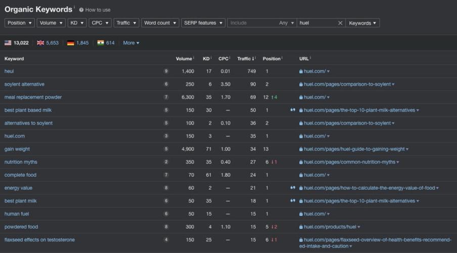Huel получает органический трафик по ключевым словам “meal replacement powder” и “powdered food”.