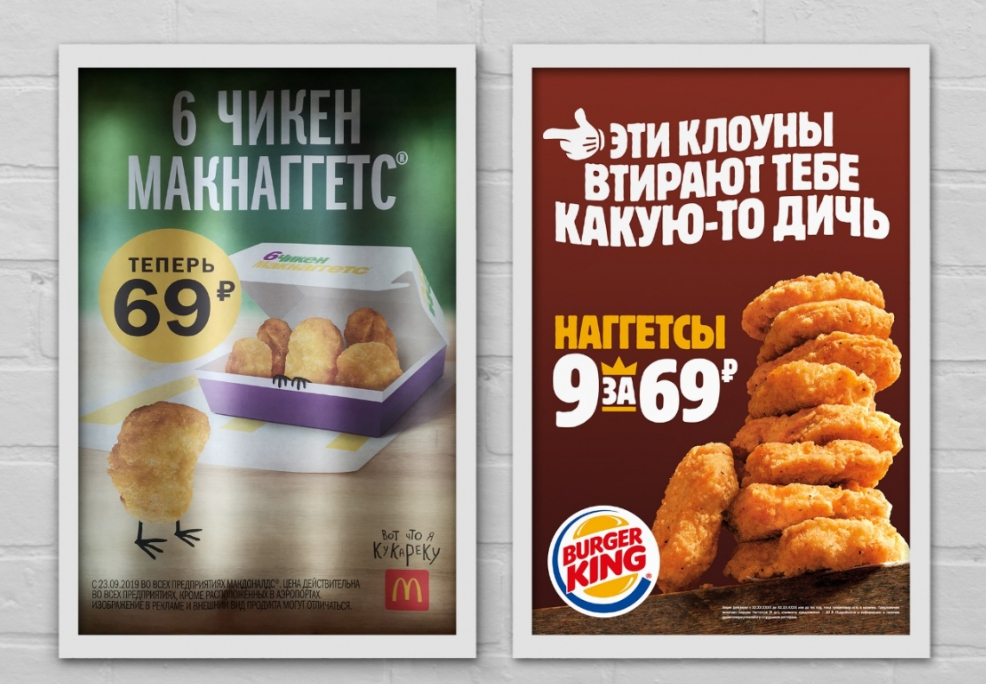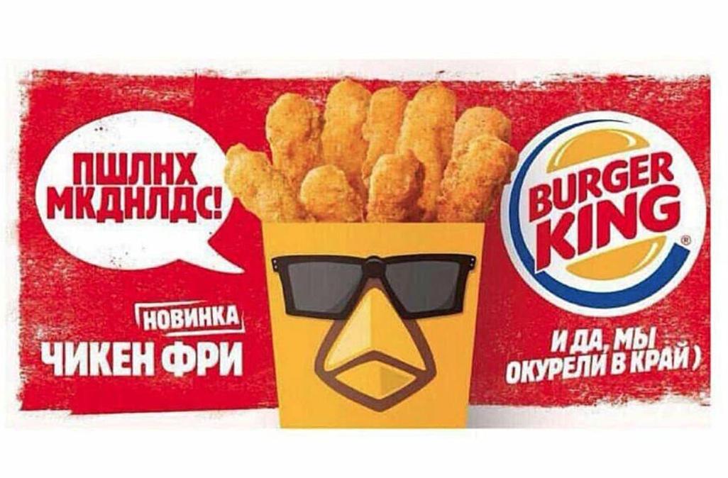 Были и ролики с Рональдом Макдональдом, который, прикрывшись плащом, посещает по ночам ресторан конкурентов, и заявления, что конкуренты не докладывают мяса. А уж их смелые плакаты не видел только ленивый!