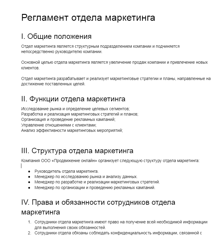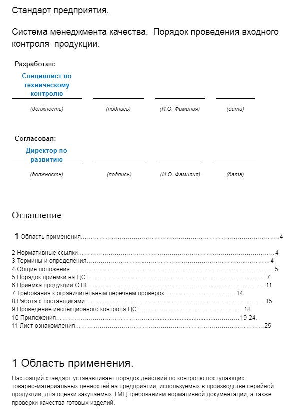Также документ позволяет собрать единую базу знаний о деятельности компании. У него должна быть четкая структура, в которой описаны процессы, ответственность, методы контроля. Оптимально, если в нем будут: