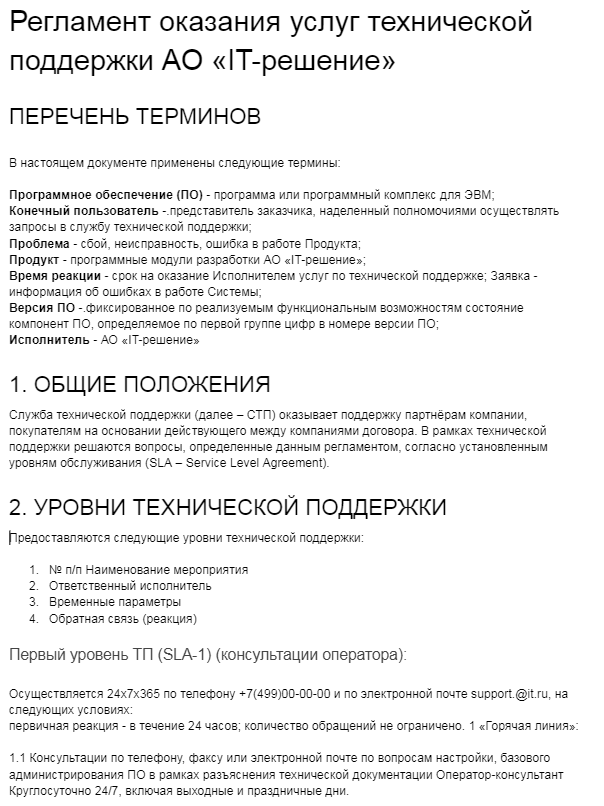 В IT-сфере регулирующий документ способствует четкому плану действий, описанию этапов внедрения продукта, отношений между сотрудниками, а также по каким критериям можно оценить успех всего проекта.