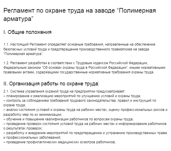 В этой сфере документ устанавливает правила и нормы поведения на рабочем месте, ответственность работников за нарушения. Это регламент по безопасности оборудования, использования средств индивидуальной защиты, проведения инструктажей и обучения персонала. Он призван предотвращать производственный травматизм. Несоблюдение ведет к самым трагичным последствиям.