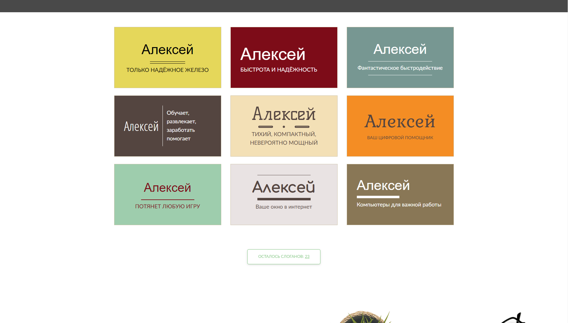 Если позиционирование компании — «самый простой и интуитивно понятный конструктор сайтов для нетехнических специалистов», слоган должен быть производным от этого. Например, «Создайте сайт. Без усилий».