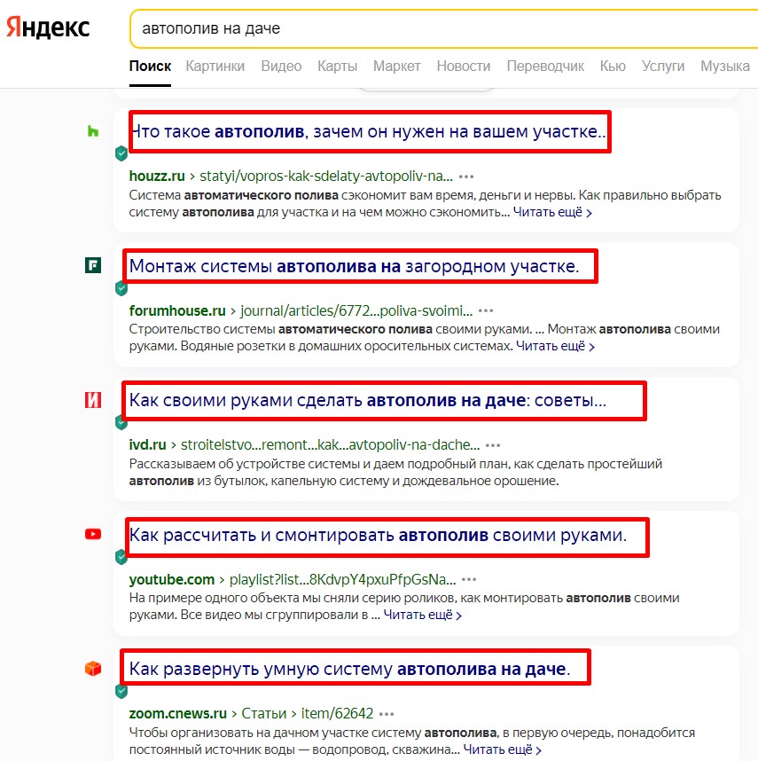 1. В первую очередь стоит обратить внимание, что под «Яндекс» или Google пишется свой Title. Вот пример, когда по одному и тому же запросу в выдаче две разных страницы на первых позициях одного и того же сайта: