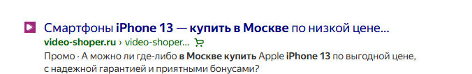 Пример. «Смартфоны iPhone 13 — купить в Москве по низкой цене…»: