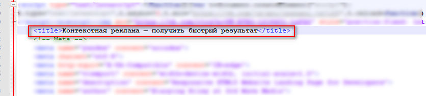 Если у вас самописный сайт, придется вписывать код руками. Для этого открываем код страницы в удобном для вас HTML-редакторе. Находим тег <title></title>. Вписываем текст для тега.