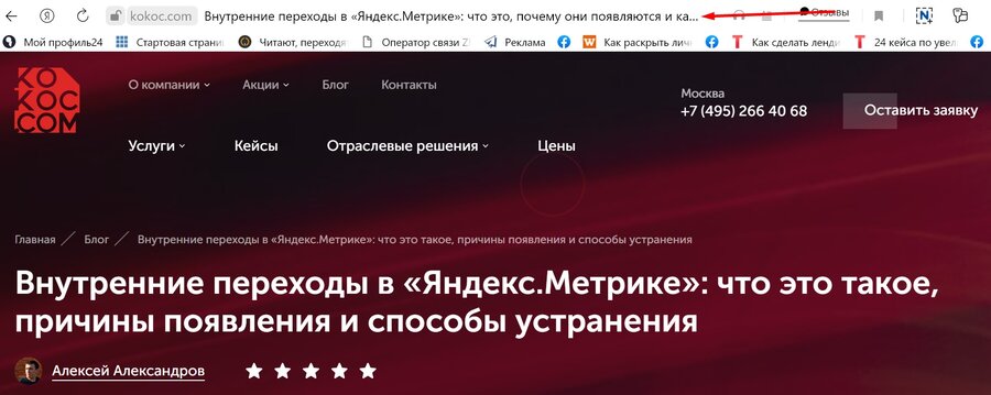 Переходя на страницу, пользователь видит в адресной строке своего гаджета метатег Title — но, как правило, частично. Чем больше вкладок открыто у пользователя, тем меньший объем тайтла отображается.
