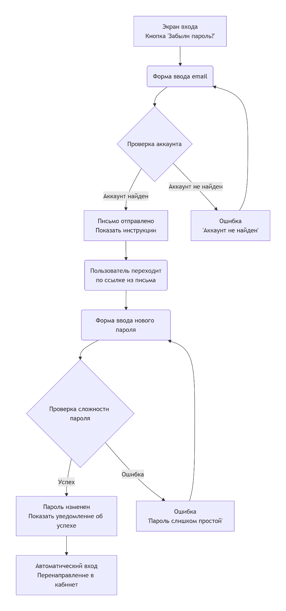 Учет ошибок — что происходит, если пользователь ввел неверный пароль? Не заполнил обязательное поле? Пропишите эти сценарии.