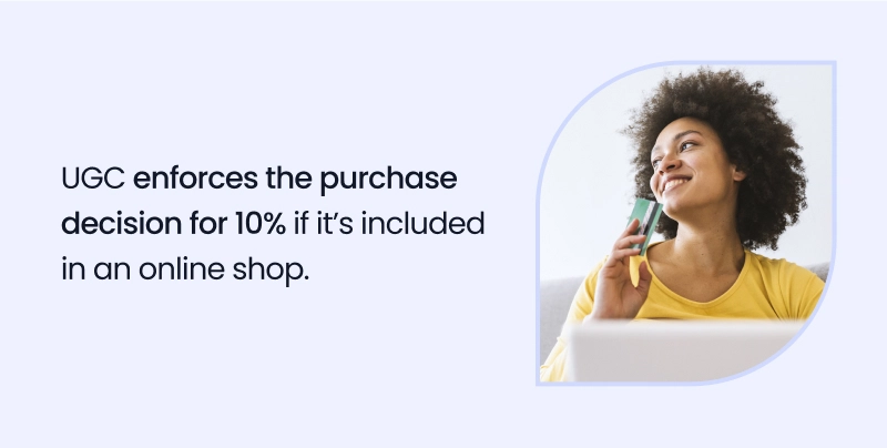 Согласно статистике, 92 % онлайн-покупателей учитывают отзывы при принятии решения о покупке. Но не только отзывы являются UGC-контентом.
