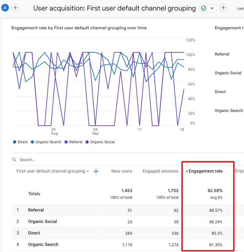 Если вы перешли на Google Analytics 4 (GA4), у вас будет новый показатель — вовлеченность. Перейдите в «Отчеты» → «Вовлечение».