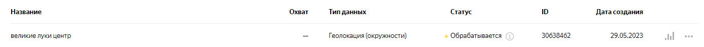 В списке сегментов появляется строка с вновь созданным сегментом. Данные в нем появятся через некоторое время.