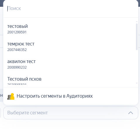 После этого из выпадающего списка выбираем нужную аудиторию. Можно при необходимости использовать несколько сегментов.