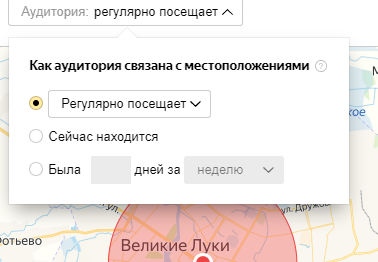 Дальше настраиваем аудиторию, для чего наводим курсор мыши на эту плашку. По умолчанию будет собираться аудитория, которая регулярно посещает указанное место: