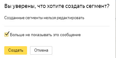 Нам показывается всплывающее окно, предупреждающее о том, что после сохранения нельзя будет отредактировать сегмент. Нажимаем еще раз на кнопку «Создать»: