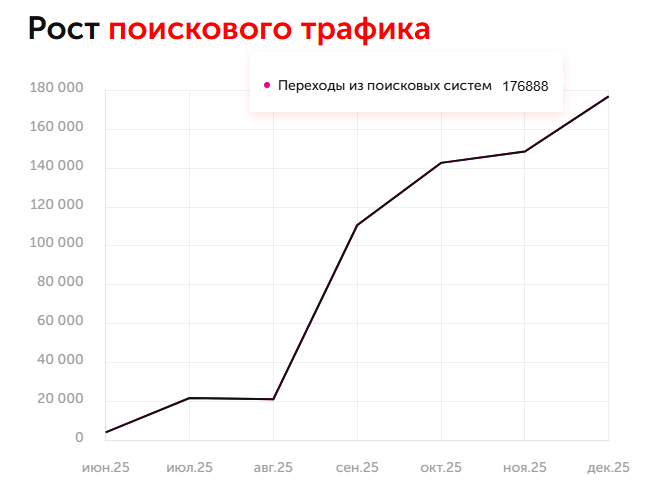 В этом проекте мы не просто обеспечили заказчику ссылки — объединили усилия инхаус-команды заказчика и специалистов Kokoc Performance (входит в Kokoc Group) и совместно организовали процесс ссылочного продвижения в большем масштабе, чем обычно.