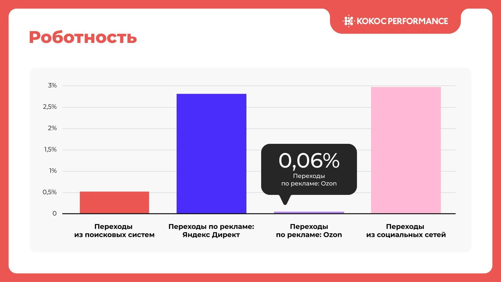 Низкий уровень бот-трафика — всего 0,06% роботных визитов.