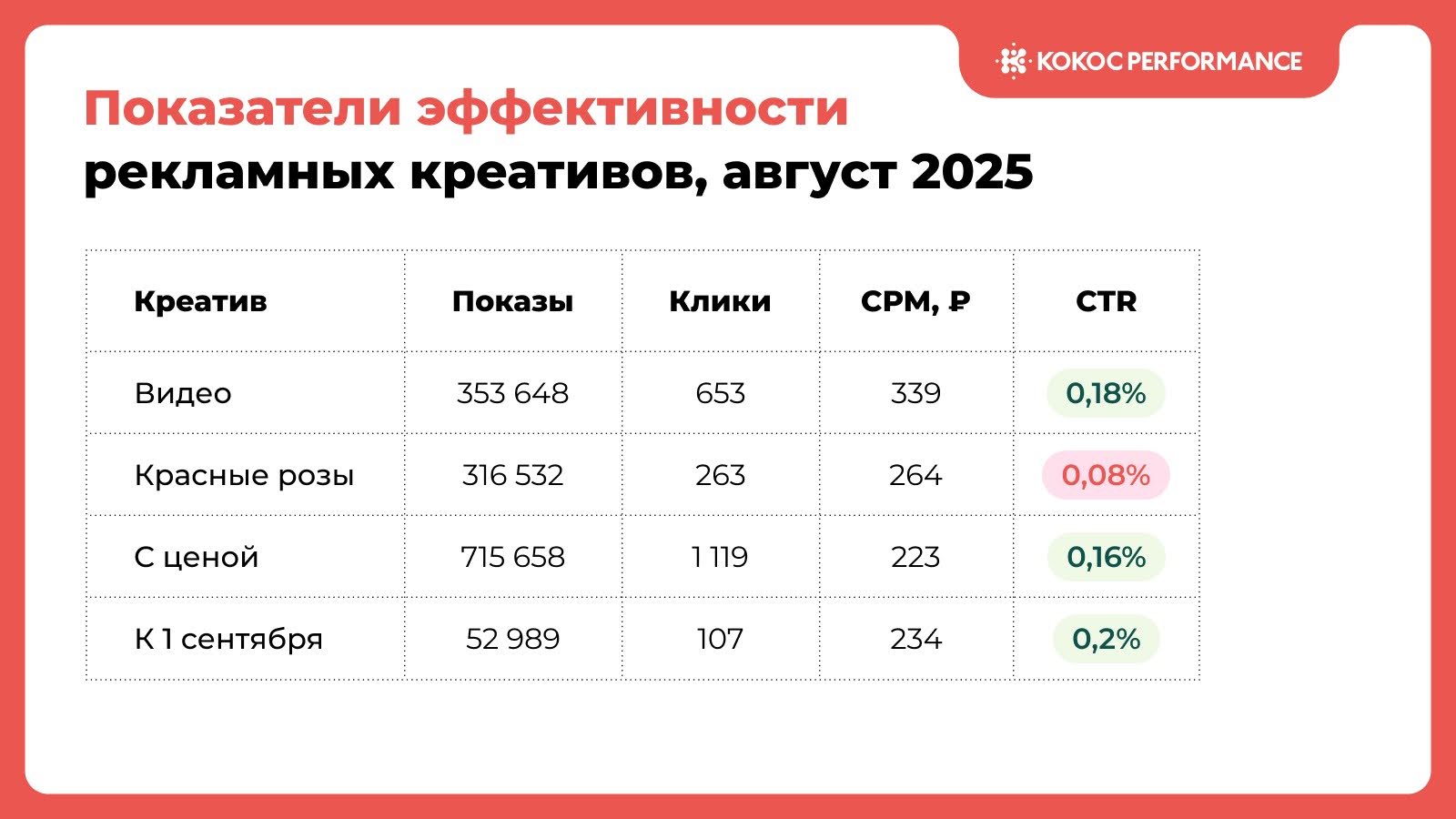 Креатив с красными розами — 0,08%.