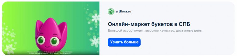 Клиент — компания «АртФлора», один из лидеров петербургского цветочного рынка. Работает с 2003 года. Сотрудничество стартовало в 2024 году — тогда «АртФлора» обратилась к нам за размещением на «Яндекс ПромоСтраницах». Стоит сказать о директоре по e-commerce и IT компании Андрее Смирнове, который всегда понимал ценность медийной рекламы как охватного механизма — инструмента, который работает на длинной дистанции, формируя лояльную аудиторию.