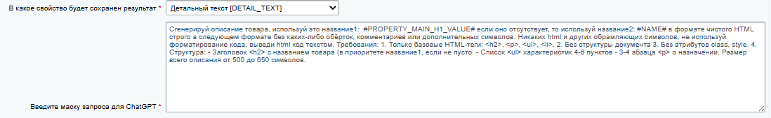 Специалисты Kokoc решили попробовать нивелировать эти подводные камни с помощью модуля ИИ генерации описаний (CMS Bitrix позволила купить и установить это решение).