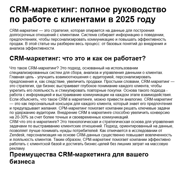 Еще раз повторим: да, это не идеальная статья, эксперт напишет намного лучше. Но как типовая SEO-статья — вполне приемлемо!