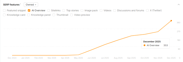 Использование ИИ-текстов способствовало также росту цитирований сайта в AI-ответах Google.