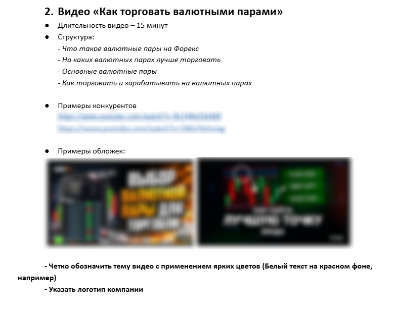 Так выглядит ТЗ на новое видео: