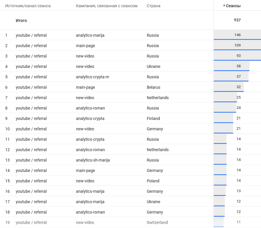 Чтобы решить проблему отслеживания переходов c YouTube-канала по РФ на сайт, мы внедрили UTM-метки. Это позволило не только понимать, наш ли это трафик, но и видеть, с какого конкретного контента или страницы пользователь перешел на сайт после просмотра видео.