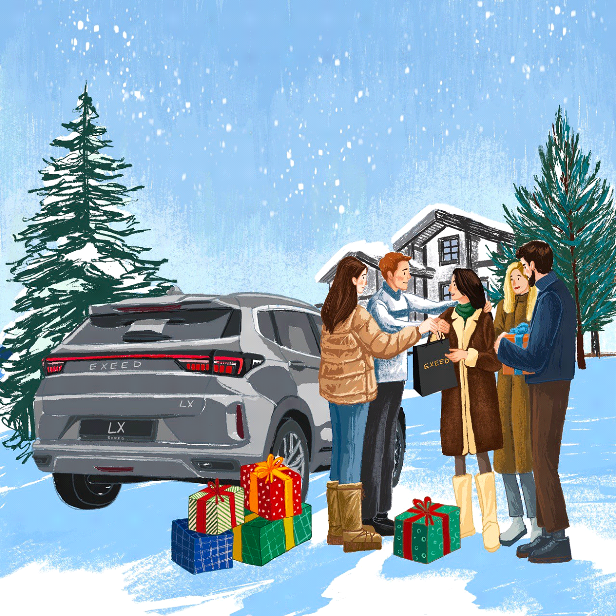 Искусственный интеллект и нейросети — это, конечно, хорошо. Написал промпт, нажал кнопку и вуаля: рекламный креатив готов. Однако настоящих тепла и душевности можно добиться, пропустив иллюстрацию через видение художника. Именно этими принципами мы и руководствовались при запуске новогоднего чат-бота для компании Exeed — автомобильного бренда из Китая.