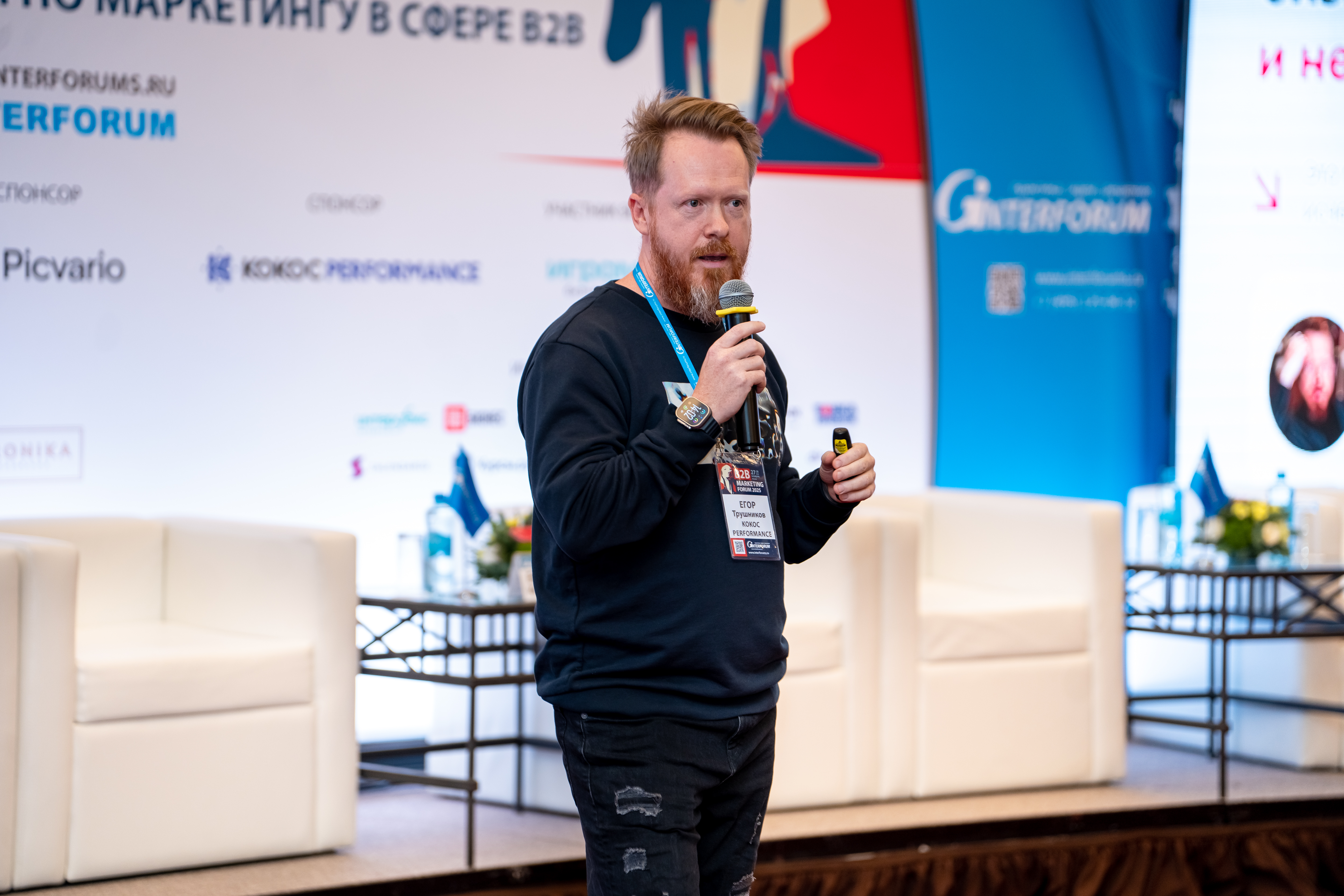 От Kokoc Performance с докладом выступил Егор Трушников, директор по стратегическим продуктам. Он рассказал о главной потере B2B-бизнеса — клиентах, которые уходят после первой сделки, и о том, почему фокус исключительно на привлечении не решает эту проблему. В докладе была показана роль CRM-маркетинга, экономики на клиента и системной работы с базой в построении повторных продаж, росте LTV и достижении устойчивой окупаемости маркетинга.