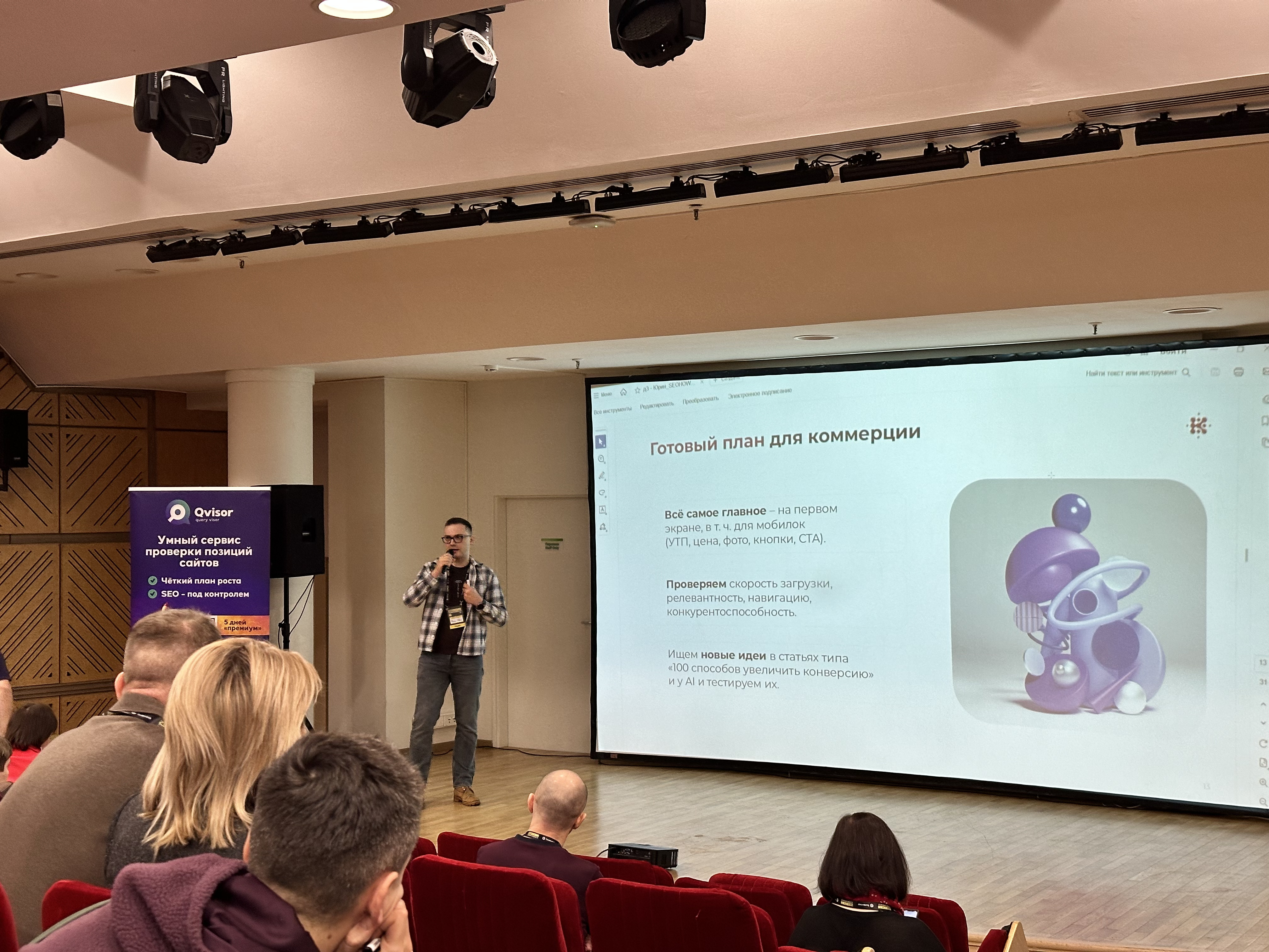 Во время выступления Иван рассказал, как действовать в ситуациях, когда конкуренты пытаются повлиять на позиции сайта через негативные поведенческие сценарии. В основе доклада лежит практический опыт работы с крупными коммерческими и информационными проектами, а также реальные кейсы из Яндекса и Google.